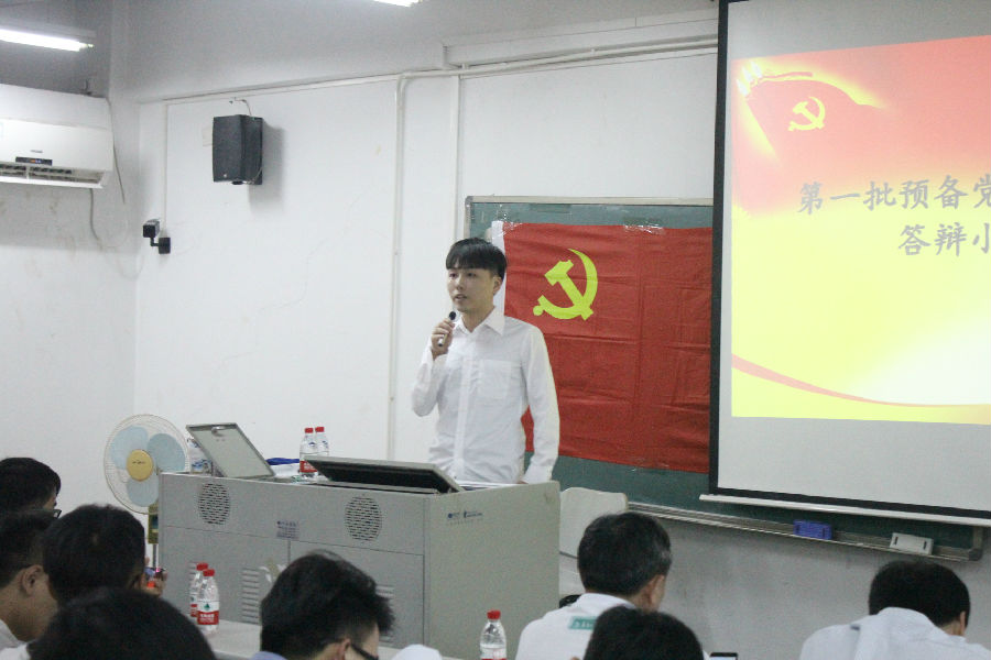 会议伊始,周如川老师报告党员出席情况和大会的流程。接着,预备党员依次上台讲述自己一年预备期以来的思想、学习、工作以及参与实践活动等方面的情况,紧接着由正式党员组成的答辩小组就预备党员的汇报情况进行提问,预备党员就问题进行相应的答辩。