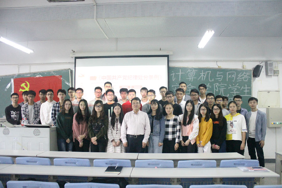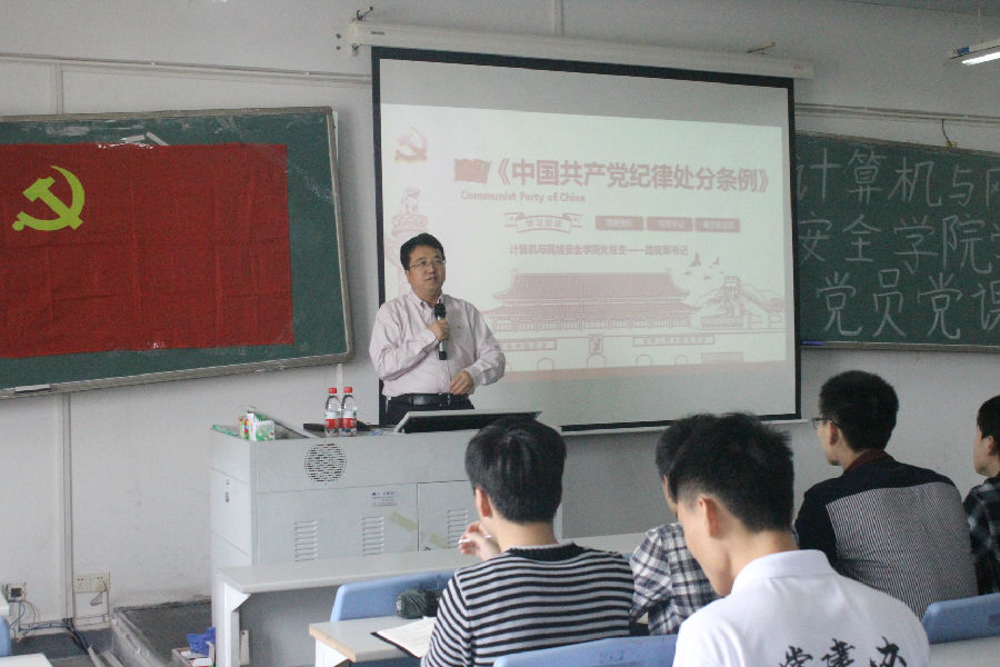 2018年10月18日下午15:30,为号召学生党员积极学习中国共产党思想政策,贯彻中国共产党纪律处分条例,计算机与网络安全学院党总支学生支部在7B410开展计算机与网络安全学院学生党员党课。本次会议的主讲人是路晓军书记,出席会议的人员是计算机学院全体学生党员。