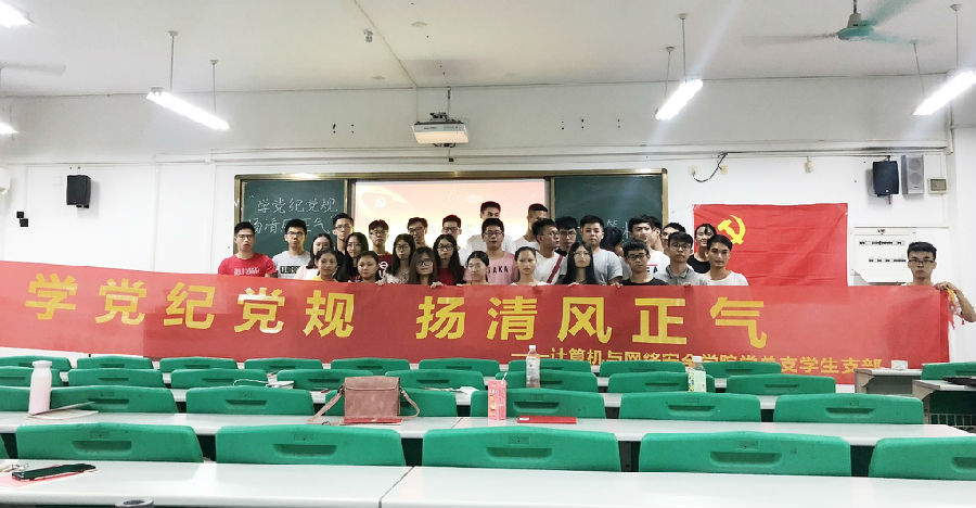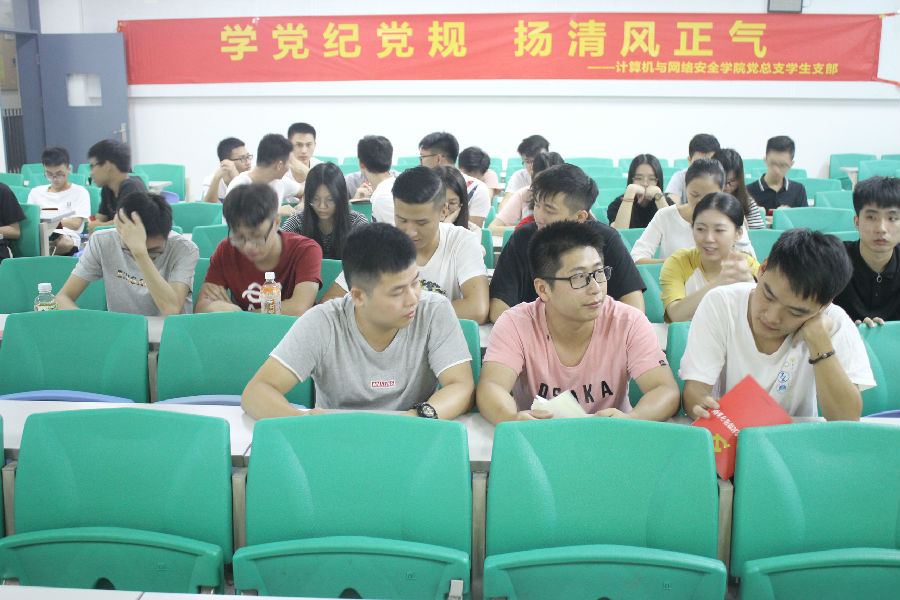 10月9日19:00,为了培养大学生的廉洁自律意识和诚信意识,培养党员干部该有的诚信自觉,提高防范和抵制腐败的能力,计算机与网络安全学院党总支学生支部在7B311开展了计网学院学生党员廉洁诚信教育党员大会。本次会议的主持人是蔡元俊同学,出席会议的人员有计算机与网络安全学院全体学生党员。