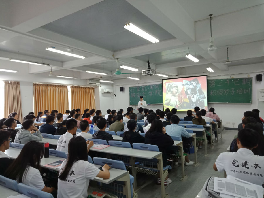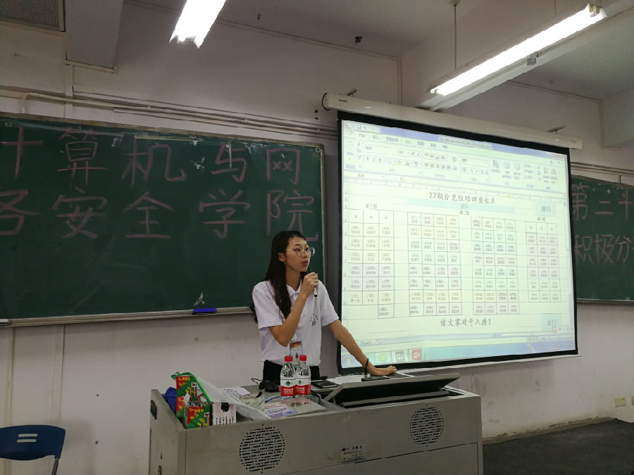 2018年10月18日下午15:30,计算机学院第二十七期入党申请人第一次分党校培训于7B409召开。本次会议的主持人是陈诗怡同学,参与会议的人员有计算机学院学生支部书记周如川老师和计算机学院第27期全体入党申请人。