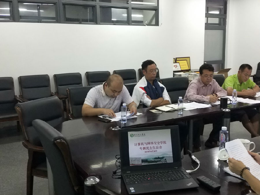2018年8月30日,计算机与网络安全学院党总支在8a307会议室召开巡视整改暨全面彻底肃清李嘉、万庆良恶劣影响专题民主生活会,学院党员领导干部路晓军、徐钦桂、程万友、黄辉参会并作批评与自我批评,校领导李文芳、指导组黄金和、萧炽成、黎清旦参会指导,总支委员列席会议。