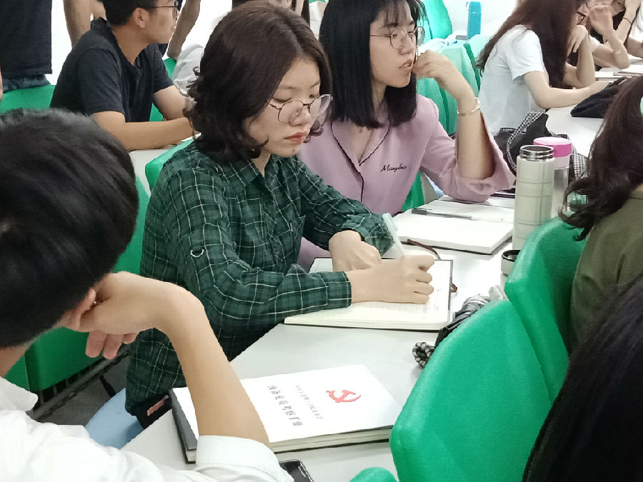 学生党员正在记录笔记