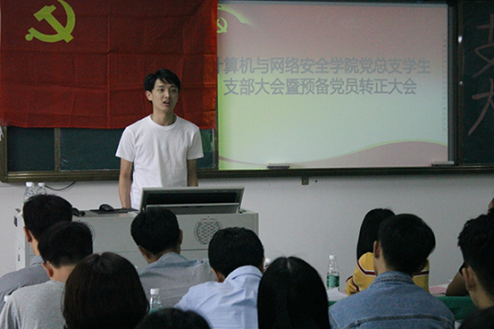 2018年4月19日下午2点30分,为了讨论陈易易等9名同志的转正问题,计算机与网络安全学院党总支学生支部在7B311开展了预备党员转正大会,出席本次大会的有计算机学院党总支学生支部书记周如川老师及全体学生党员。