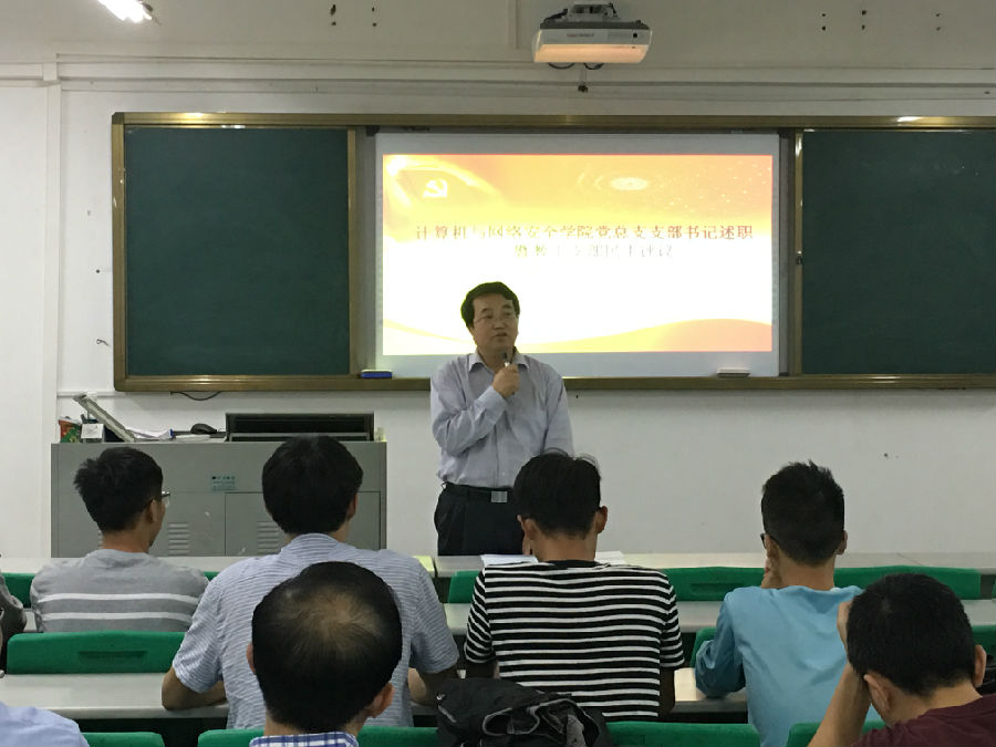 11月30日下午3:30,为了了解一年来的党建工作情况,进一步规范党建工作,计算机与网络安全学院党总支于7B311开展支部书记述职暨党员民主生活会大会,出席本次会议的有计算机与网络安全学院全体教工支部党员代表及学生党员代表。