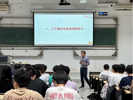 9月23日下午,计算机学院在6F102教室开展了以“全面创新,强国有我”为主题的思政第一课。本次课程由学院党委书记刘群锋主讲,旨在深入学习贯彻党的二十届三中全会精神,激发同学们的爱国情怀和创新精神,与会人员为2023级计算机类1班、2班以及2023级应用化学2班。