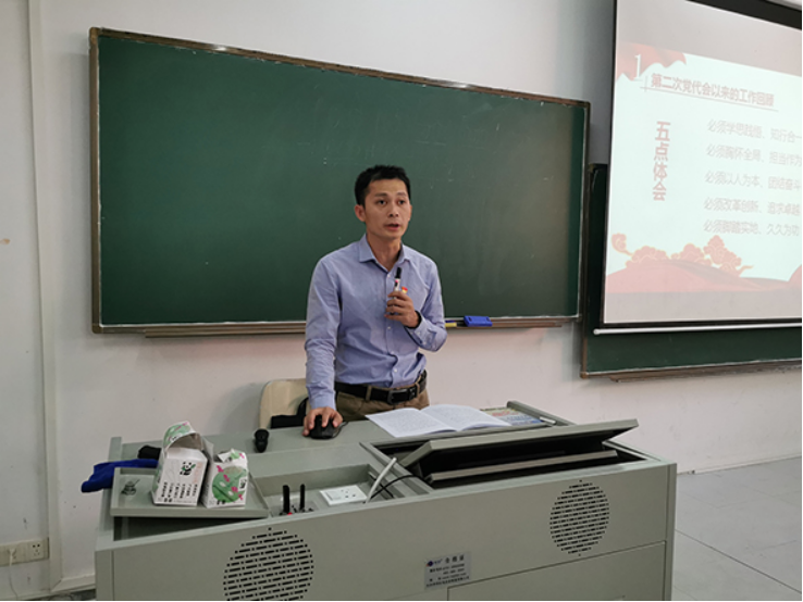 首先,夏志友老师为师生党员解读了《在中国共产党东莞理工学院三次代表大会上的报告》,报告中回顾了中国共产党东莞理工学院第二次代表大会以来完成的目标任务以及全校取得的成绩,提升了师生党员对本校建设的信心。其后,夏志友老师向师生党员介绍中国共产党发展的历史和中国革命史,丰富了师生党员对共产党的认识。最后,路晓军书记总结了第二次党代会以来的成功与不足,为未来工作进一步作出要求。