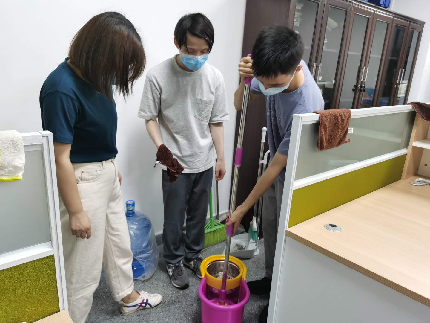 支部会议结束后,全体党支部成员在进行了“爱国卫生运动”的大扫除活动,由魏文红书记带头,对办公室、学院公共办公区域和走廊等进行了打扫和清洁,大家干劲十足,表示这是一次特别有必要且有意义的党日活动。