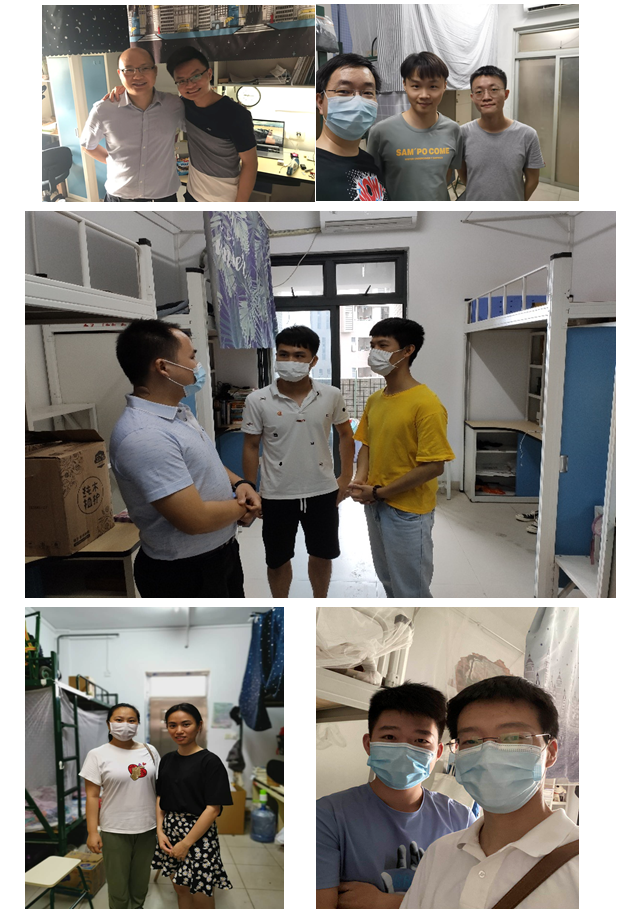 计算机学院计科与行政教辅教师党支部李青青、伍华章、葛浩、魏小锐、黄培灿、李广明、曹莹莹、李学强、陶铭、卢安、魏文红等党员教师,带头走访了87位已返校学生的宿舍,问寒问暖,看看他们毕业前还有些什么需求,毕业手续办理得如何?嘱咐他们:在校期间要注意身体及财产安全,注意通风透气,空调不要调太低,不要感冒,不聚集,戴口罩……