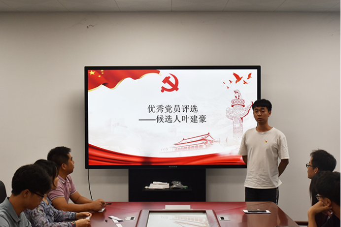 会议伊始,邓书记介绍了本次大会的议程。介绍完毕,大会进入竞选环节,四名预备候选人依序上台,对自己过去一年的党务工作,学习成果等方面进行五分钟的汇报。汇报完毕,由书记与在场代表对预备候选人进行提问,在预备候选人的答辩中,可以感受到预备候选人平日里用党的先进理论不断充实自我,努力提高自身政治素养,还能感受到他们充满为同学服务的热情。提问结束后,大会进入投票环节,经过不记名投票与公开统票后,邓书记宣布叶建豪、敖斌两名同志被推荐为优秀党员人选。至此,本次大会圆满结束。