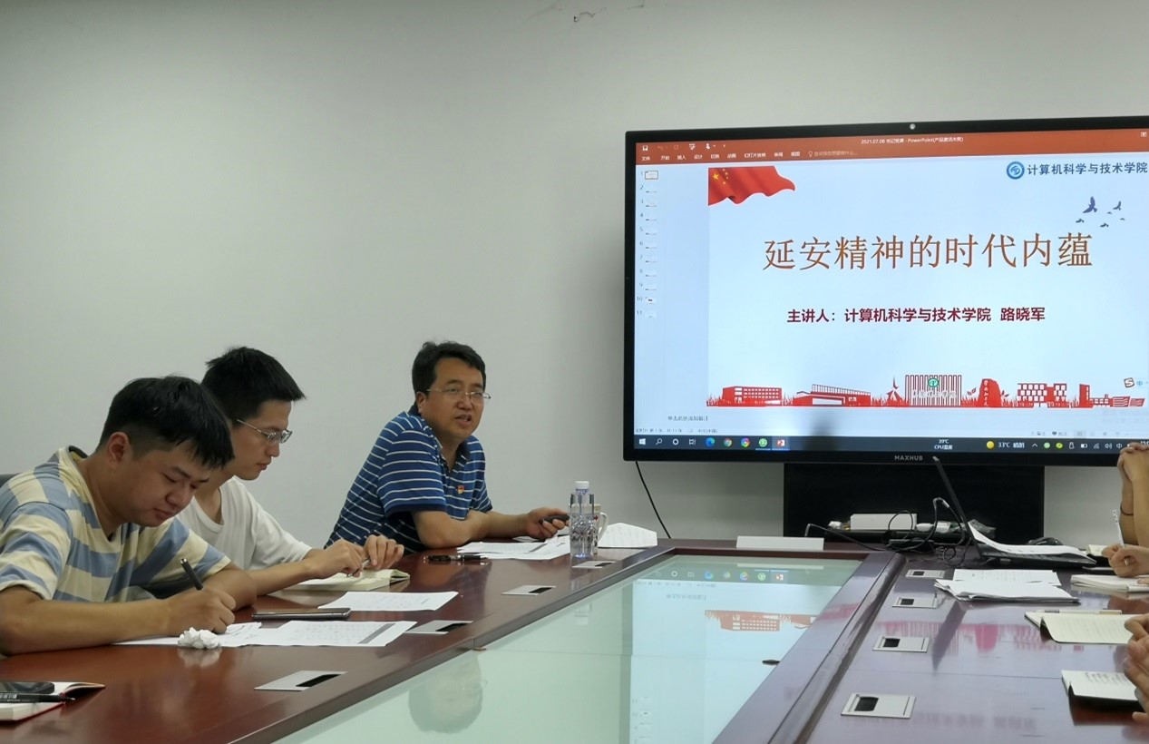 党课伊始,华帅、文青同志率先阐述了对延安精神的认识,并提出应将研究生的学习工作与延安精神相结合开展实践的感悟。在此基础上,路晓军书记带领全体同志深刻理解延安精神的基本内涵及其现实意义。