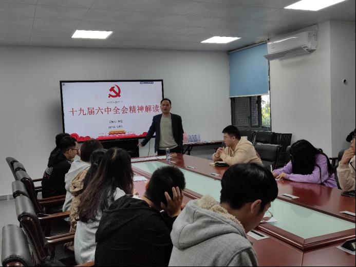 12月7日上午,3044am永利集团官网研究生党支部于8A-306开展“党的十九届六中全会精神解读”专题党课及专题学习研讨会。本次党课的主讲人为计算机学院副院长陶铭,参与人员为研究生党支部全体党员。
