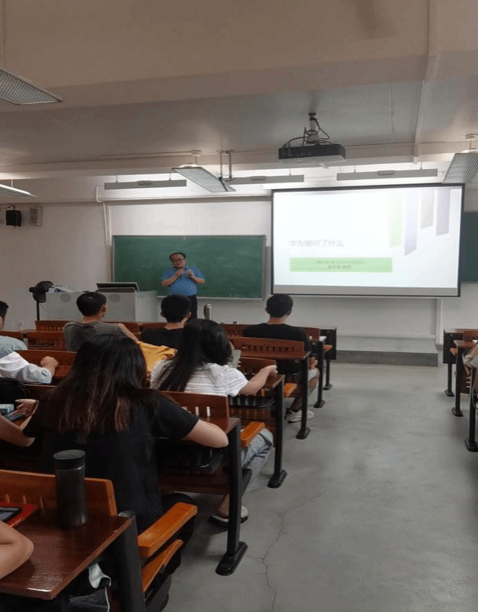 袁院长勉励同学们:“作为新时代的新青年,应该学习华为面对艰难时刻所展示出来的沉着稳重,每个人都应有‘欲戴王冠,必承其重’、‘放弃幻想,准备战斗’的信念,潜心吸收专业知识,勇于钻研专业难题,将来用自己过硬的本领报效祖国。”