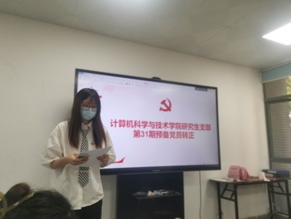 会议进入第三项议程,支部研究讨论第31期预备党员到期转正事项。首先支部书记王若羽宣布到会党员情况:支部有表决权的正式党员共18人,其中出席今天大会的共16人,有表决权的正式党员实到会人数超过应到会人数的一半,符合有关规定,可以召开转正大会。第31期预备党员预备期已满,该批同志提交转正申请,经支委会研究同意提交至党员大会进一步讨论,本次大会就第31期预备党员转正事宜进行逐一讨论决议。