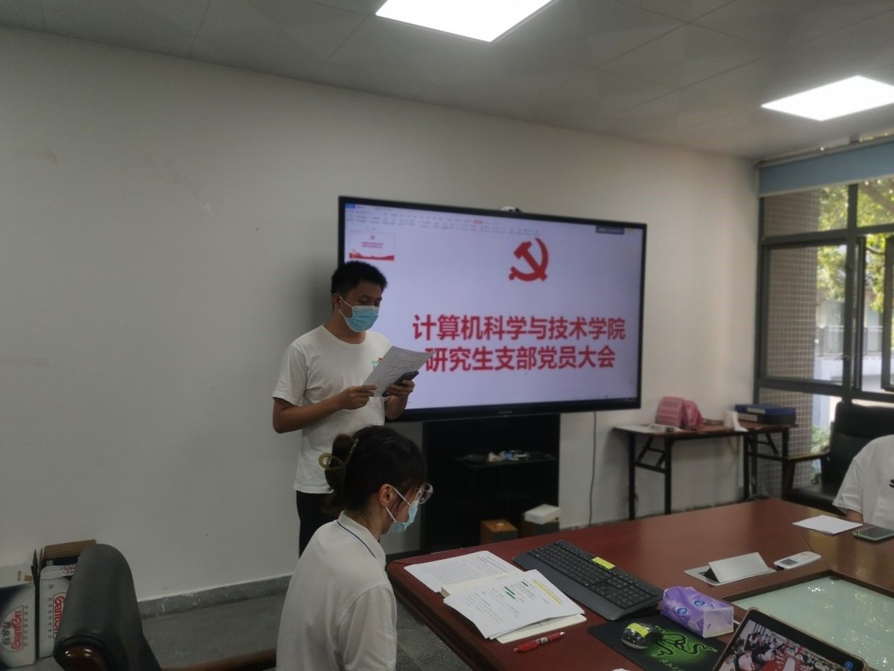 2022年11月26日,3044am永利集团官网研究生党支部于计算机楼8a306召开预备党员转正大会暨专题学习研讨会。本次支部大会特邀学院副院长陶铭同志作党的二十大专题党课报告,会议由支部书记王若羽主持,研究生党支部全体党员同志参加了此次会议。