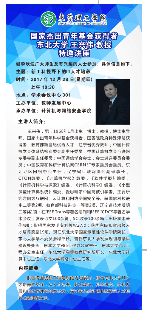 国家杰青东北大学王兴伟教授特邀讲座