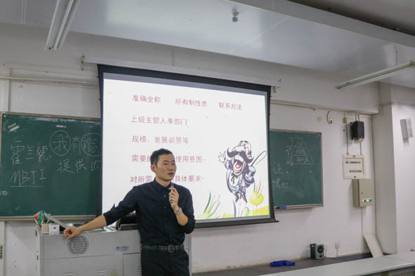 2018年11月26日晚上,江源老师在综合教学楼7B412教室开展了有关如何在面试时“一句话胜于百句”的知行讲座。首先江源老师提出“我有能力胜任贵单位提供的岗位”这一句话,通过理解“我、能力、胜任、贵单位、岗位”,去应对面试。然后从人的本质聊起对“我”的理解。“需要,自由自觉劳动,一切社会生活的总和”这三点便是对人的本质的认识。
