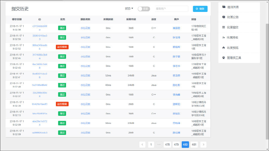 在整个比赛过程中,3044am永利集团官网自研的OJ平台运行平稳,并经受住了运营以来最大并发访问流量的挑战。根据比赛约定,前120名同学将获得11月22日下午正式比赛的参赛资格。OJ平台显示,上述120名同学均在4小时内,成功解决7道以上编程题目。