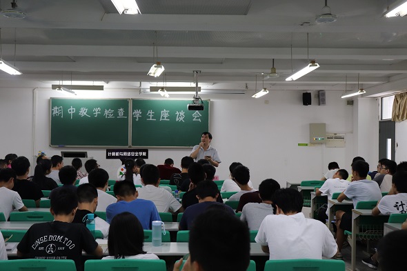 10月25日下午3点,计算机与网络安全学院期中教学检查学生座谈会在松山湖校区综合教学楼6E304举行。本次座谈会到场嘉宾有:计算机与网络安全学院学工办主任兼团总支书记的江源老师、学生党支部书记兼辅导员周如川老师、计算机与网络安全学院辅导员:杨英洵老师、李国歌老师、赵海峰老师,以及各专业的老师:马云云老师、李学强老师,、黄均才老师、何凯老师、黄锦旺老师和谢伟鹏老师。