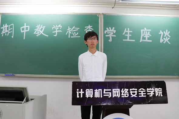 活动伊始,主持人介绍到场嘉宾。随后,江源老师上台讲话,阐述了本次座谈会的目的和内容,并指出每个学生都可在此次座谈会上发表意见。紧接着,随着主持人和在场工作人员的安排,各专业的学生依次站起来发表意见,然后,各专业的老师又依次站起来对学生的问题进行解答。首先是计算机科学与技术和物联网工程的学生发表意见,其中有学生上课沉默寡言、学生回答不积极等问题;然后计算机科学与技术专业的老师针对性地提出了建议。最后,所有学生发表意见完之后,李学强老师上台总结了本次座谈会的内容,并提出了相关的指导意见供学生参考。