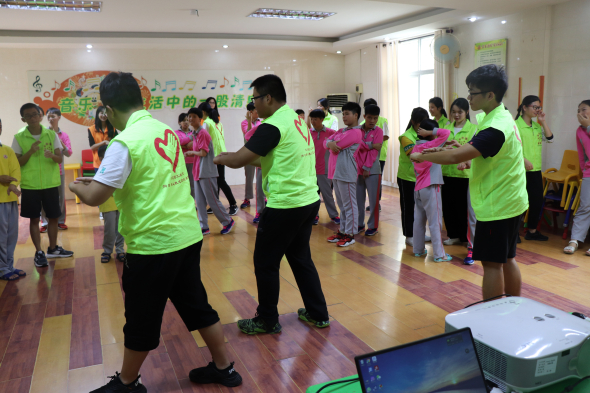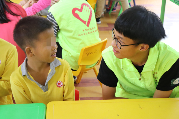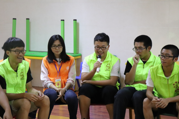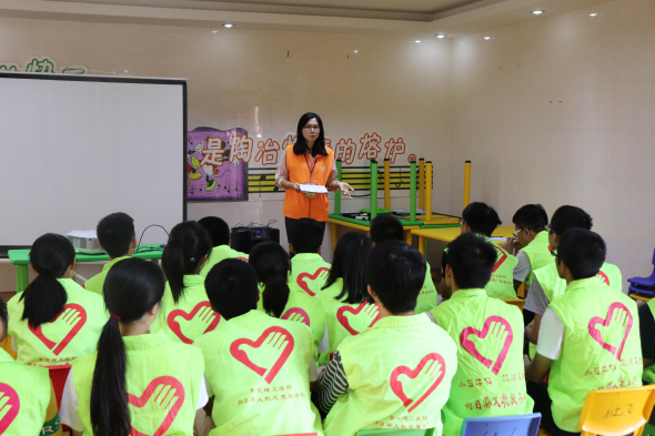 2点半左右,孩子们有序进场,志愿者们为了防止孩子们刚睡醒而兴趣不足,特意准备了一个小视频,播放期间,孩子们认真观看,播放后,志愿者开始对视频的内容提问,现场气氛逐渐调动了起来。接下来到了小游戏时间,志愿者们表演骰子和扑克牌的魔术,并且现场教孩子们变魔术。随着时间的推移,很快到了物理实验时间,由于材料不足,志愿者们只是在台上演示了一遍,没有让孩子们亲自动手做实验。最后一个环节是志愿者们带着孩子们一起跳社会摇,孩子们很开心,气氛很好。到了分别的时候,志愿者们给孩子们送上精心准备的小礼物,一起拍了大合照,孩子们便在义工的带领下有序得回去了。
