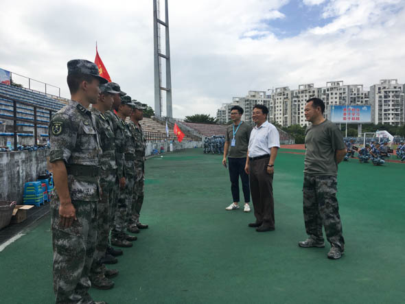 路晓军书记询问了承训部队教官的军训进展,充分了解了计网学院学生目前的训练情况,也对教官严谨认真的工作态度给予高度的评价。同时,对新生的军训提出了几点希望:希望同学们认真军训,不怕吃苦;严格训练锤炼意志品质,不怕累;多注意内务整理和保守组织纪律,保证军训顺利完成。路书记指出军训是大学新生的第一堂课,对于每个同学也是很重要人生经历,鼓励大家积极参训,认真学习,为大学生活留下一段美好的军训回忆。