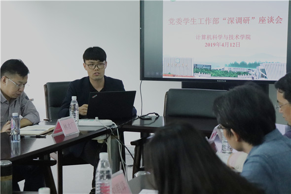 4月12号下午,为了收集学生在学习和生活中出现的问题并进行改善,3044am永利集团官网于松山湖校区综合教学楼8A307举行了党委学生工作部“深调研”座谈会。本次会议出席嘉宾有:学生工作部部长黄金和、学生社区服务中心主任林才广、党总支书记路晓军、副院长刘群锋、副院长魏文红、班主任徐建敏、班主任黄培灿、辅导员周如川以及学生代表。
