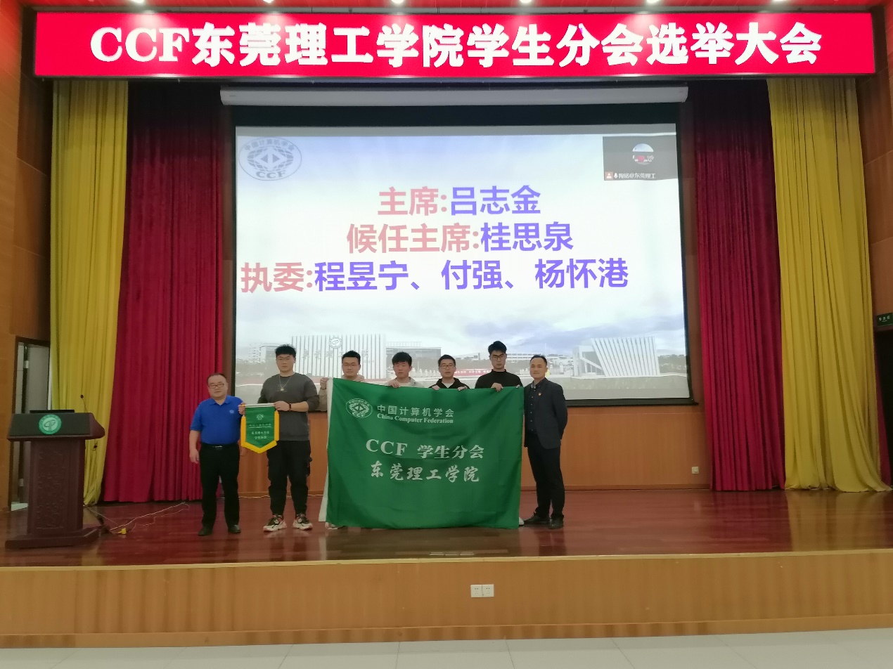 经过多轮紧张有序的投票选举,最终产生了CCF东莞理工学院学生分会首届执委会,计算机科学与技术20级研究生吕志金当选为现任主席,21级研究生桂思泉当选为候任主席,21级研究生程昱宁、杨怀港、付强当选为执委。由此CCF东莞理工学院学生分会宣布正式成立。这也是全国第64个学生分会,也是广东省成立的第6个学生分会。
