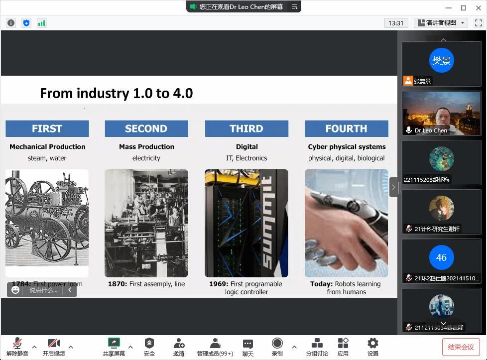 讲座方面,计算机学院开展了2场讲座。英国埃塞克斯大学杨鲲教授《移动通信网络及其计算问题》讲座从移动通信的发展历程开始,引出包括6G在内的移动通信的最新研究进展及其所面临的挑战等。从计算的角度给出应对思路,给出了通信-计算融合的具体案例介绍,包括针对具体场景的问题建模和求解算法。英国纽卡斯尔大学陈益副教授开展了《人工智能与工业4.0》讲座,基于工业4.0介绍了AI驱动的创新概念框架,该概念框架是未来的智能设计和制造平台 - 计算智能辅助设计和工程(CIAD)及其多学科应用。