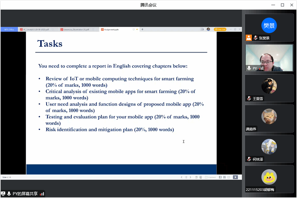 课程邀请了英国莱斯特大学周挥宇教授,英国谢菲尔德大学杨珀副教授开展了《计算机视觉和人工智能》、《普适计算和可穿戴智能》两门短期国际课程。《计算机视觉和人工智能》聚焦于计算机视觉和人工智能领域。让同学们更深刻地了解到计算机视觉这一具有人类视觉系统能力的基于计算机的系统。在《普适计算和可穿戴智能》课堂上,学生们不仅学习了普适计算和物联网相关理论概念,还学习了情景感知,可穿戴感知,移动感知等相关概念和技术。