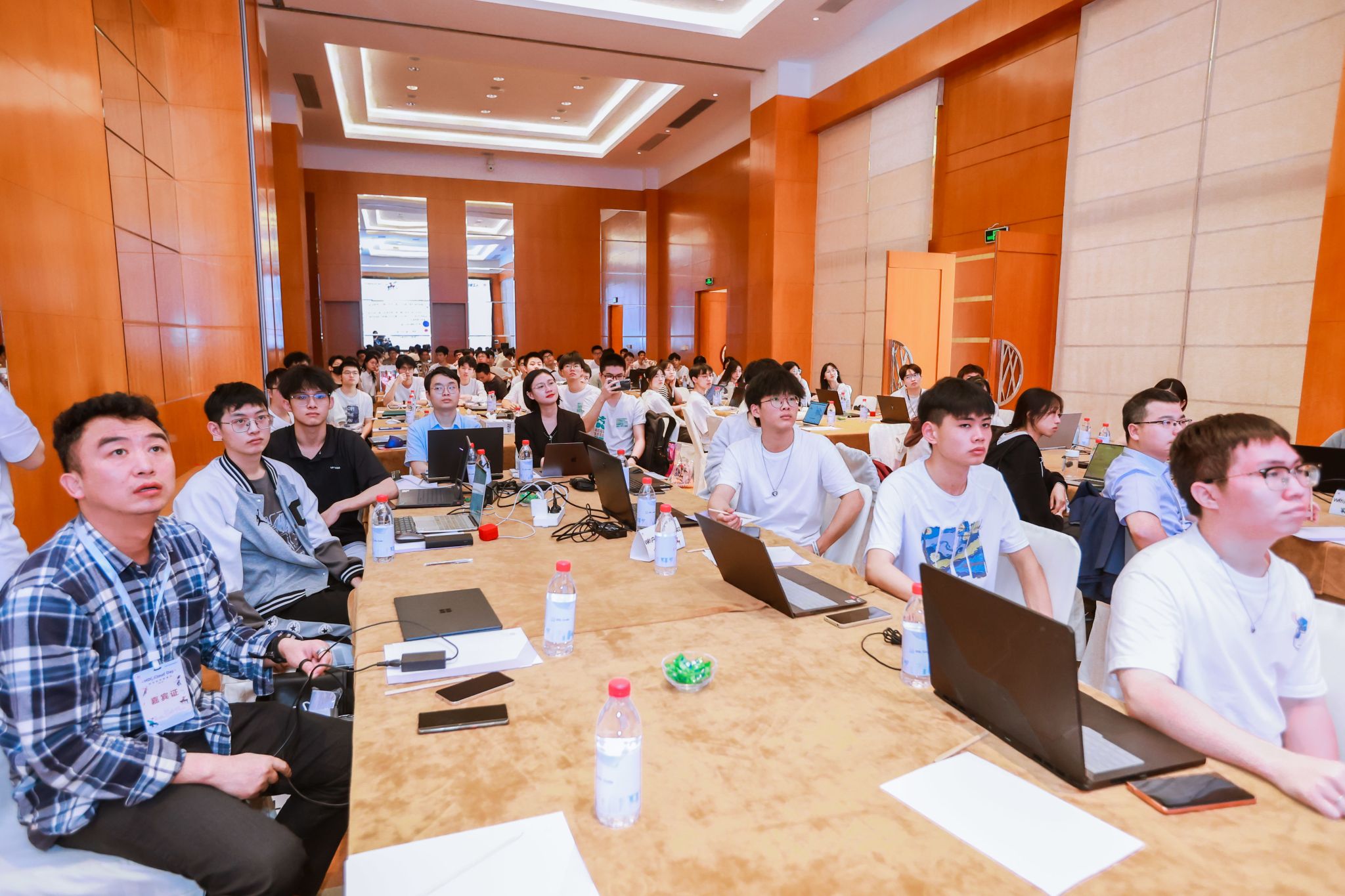 最后,华为云技术专家陈威宇进行《开发者的技术成长之路》主题分享,介绍了华为云开发者认证既可以助力个人提升,又可以帮助企业识别人才。在场同学聚精会神,认真聆听。