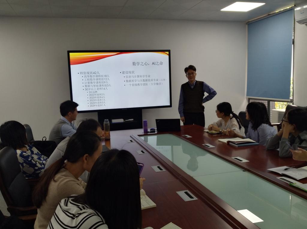 其次,刘院长介绍了数学系目前的师资情况,以及目前信科专业的建设情况,再结合本月课程评估的情况,建议大家大家在积极提升自己教学能力的同时积极增强自己的科研业务能力,在教育教学中多注意成果的凝练,为专业建设和以后硕士点的申请做好充分准备。