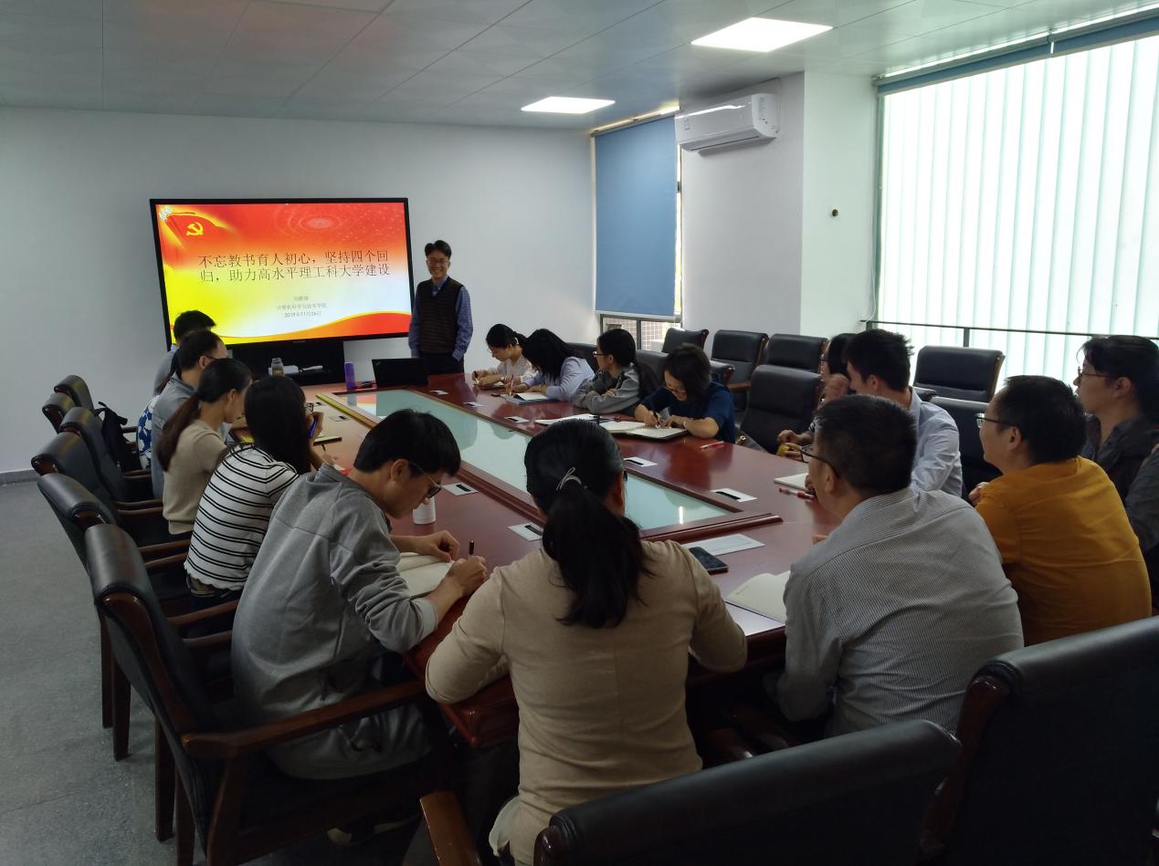 2019年11月26日下午2:30,高等数学,工程数学,计算科学,智能科学四个课程组的数学老师在6A306召开了以不忘初心教书育人,坚持四个回归为主题的教育教学大讨论,会议主要围绕如下几个问题展开: