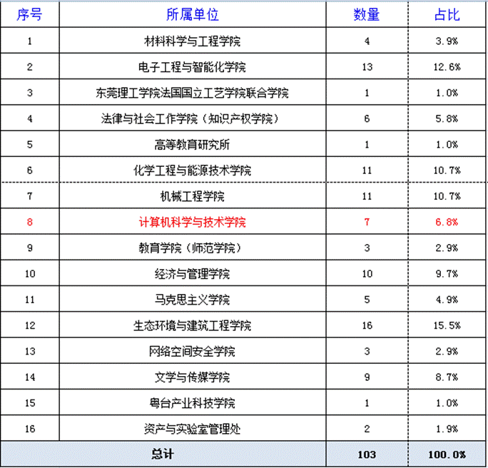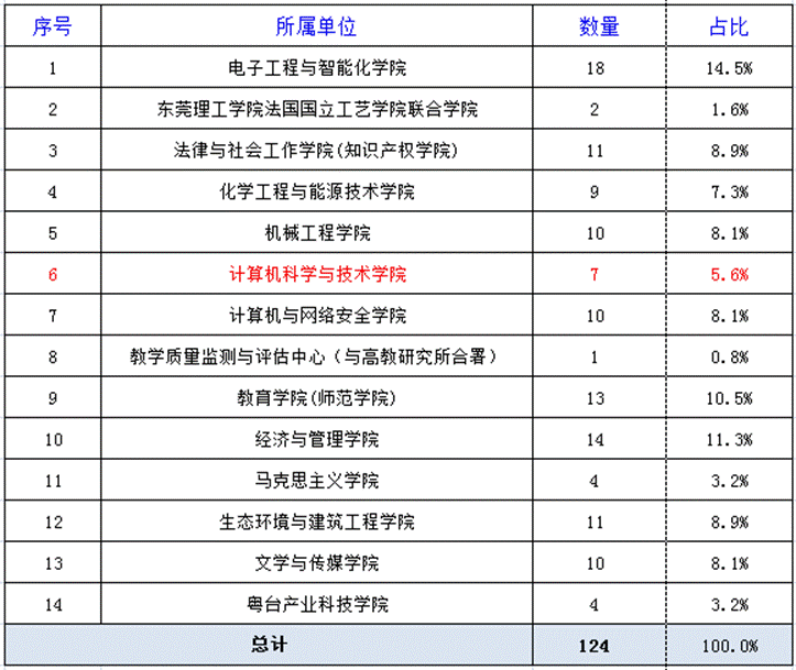 据了解,3044am永利集团官网在2018年度东莞理工学院质量工程项目拟立项是7项,全校拟立项124项,我们学院占比例为5.6%,而在2019年度东莞理工学院质量工程项目拟立项是7项,全校拟立项103项,占比例为6.8%,增长了1.2%。