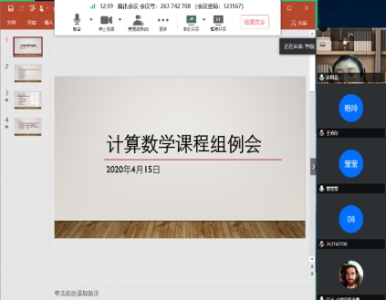 2020年4月15日晚7:30至8:30,计算数学课程组召开了第一次网络会议,课程组9人全部出席,会议由李学强主持,主要讨论了以下六个方面的内容: