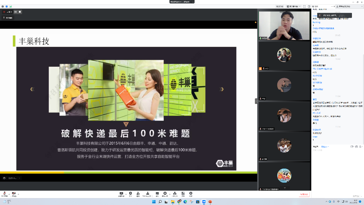接下来,进行了校友、企业代表分享环节,由钟召昌工程师,(张剑老师毕业生,来自深圳市丰巢科技有限公司)主讲。他分享了个人就业经历、丰巢科技公司介绍、推荐技术、信息抽取技术、智能审核技术、智能客服等干货,并介绍了当前业界的岗位需求,尤其是近期火热的多模态数据的分析处理。他说现在计算机视觉、自然语言处理、语音识别岗位较多,但入门有门槛,建议同学们要主动学习、明确目标、夯实基础。