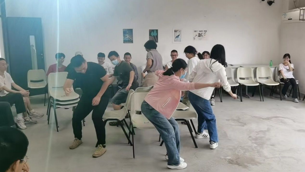 随后,2021级大数据1班和2班的班委在智慧教室6B4026B403开展了一场专业破冰环节:抢凳子游戏。这项旨在促进师生之间相互认识的活动中,除学生外,老师们也积极参与其中。根据游戏中的输赢,节目组为未能抢到凳子的师生们设置了奖励和惩罚措施。通过本轮破冰活动,学生与学生之间不仅更加深入地了解了彼此,而且促进了师生之间更密切的专业交流。