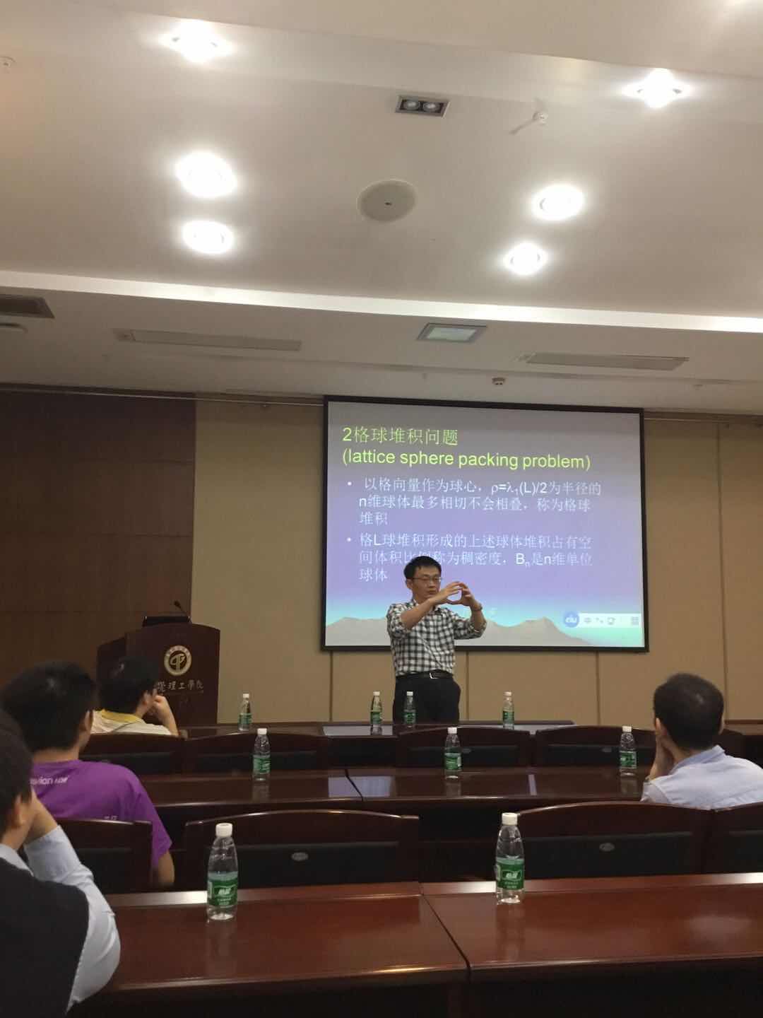 报告中,陈豪教授首先介绍了密码学的起源与发展历史,简要解释了密码学的几个基本概念与应用场景,然后介绍了格密码学问题的来源,格问题在数学上的重要性。 通过几个例子详细地解释了格问题中的几个数学量:n维格, kissing number, 格的体积,格球堆积问题,格的稠密度等,重点从格困难问题的计算复杂性研究、格困难问题的求解算法、格密码体制的设计以及格密码分析等几个方面回顾了格密码领域多年来的主要研究成果,并简要介绍了目前自己从事的格密码体制的研究工作内容。