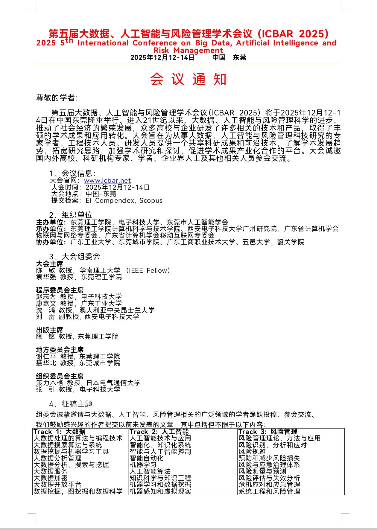 第五届大数据、人工智能与风险管理学术会议通知
