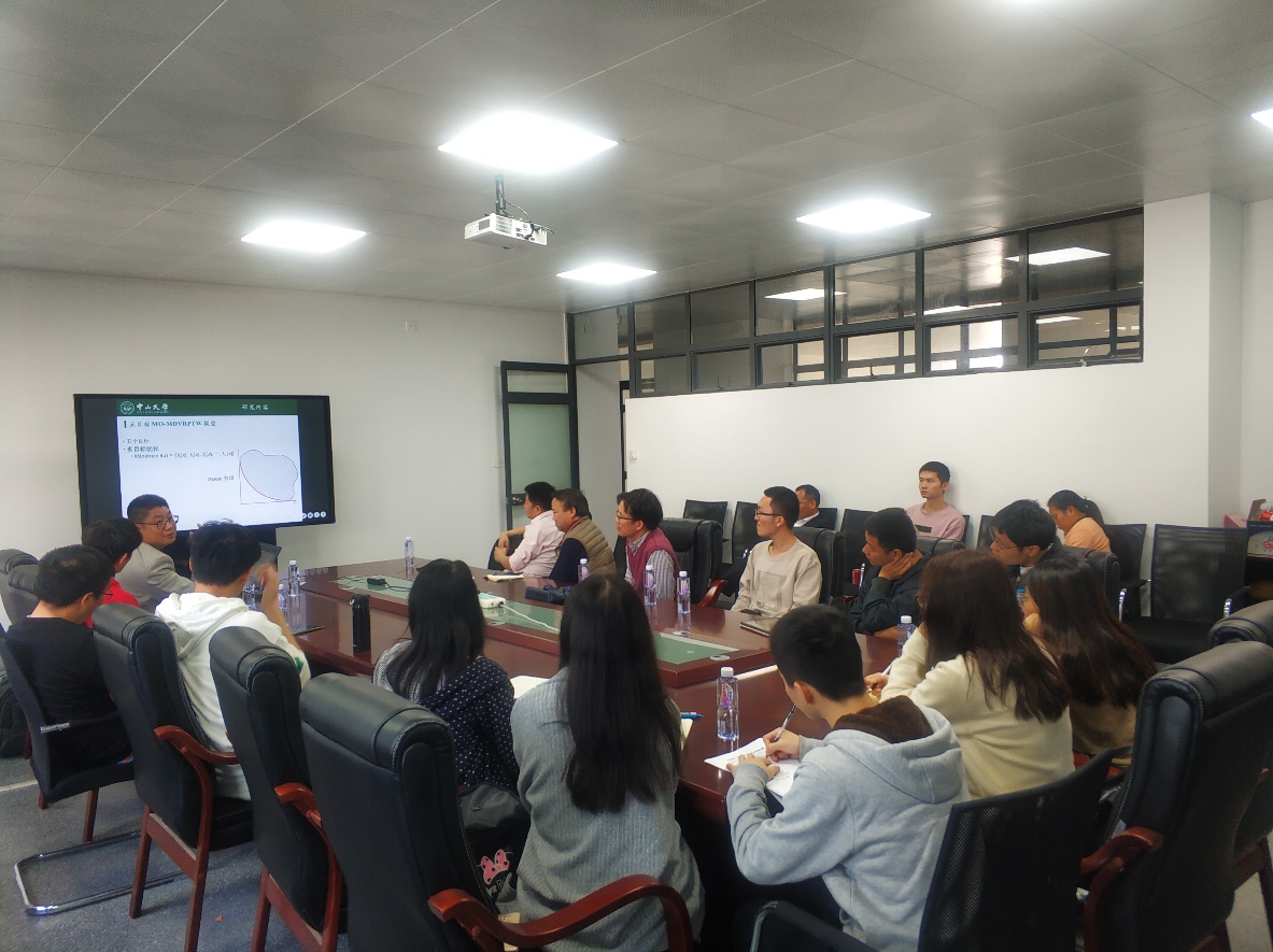 接下来是王甲海教授为我们介绍智能优化方法及其在复杂车辆路径优化与调度中的应用。王甲海教授所带领的团队设计开发了一套智能优化方法,解决实际的多目标复杂车辆路径优化与调度问题。本次报告会上,他主要围绕典型问题,算例构造,算法框架,解集分析,并行实现,新一代算法等方面进行介绍和讲解,并对近期所取得的系列成果进行报告。此外,王甲海教授还为我们介绍了将相关演化算法与机器学习相结合的思路和新的发展方向,为青年老师们和研究生们提供了不少新颖的研究方向和研究思路。