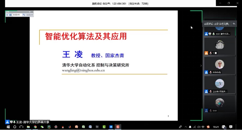 在报告会上,王凌教授为我们介绍了智能优化算法及其应用。王凌教授首先从智能优化算法是什么出发,引出当代科学技术的发展的方方面面都离不开优化算法的应用,为我们介绍“为什么要发展和应用智能优化算法”。王凌教授提到“任何控制与决策问题本质上都是优化问题”,说明优化问题的普遍性与优化算法的重要性。紧接着,王凌教授为我们介绍智能算法的流程与关键问题。其中智能优化的步骤包括:建模、框架设计、操作设计、参数设置、策略设计、试验设计、测试比较与应用。王凌教授指出智能算法的“智能”主要体现在策略设计上,这为众多研究人员提供了新的方向和角度。王凌教授还结合智能优化的典型应用来阐述优化的问题分类及其挑战。之后,王凌教授还热情地回答了观众的问题,为更多的研究人员提供了更多的研究方向。