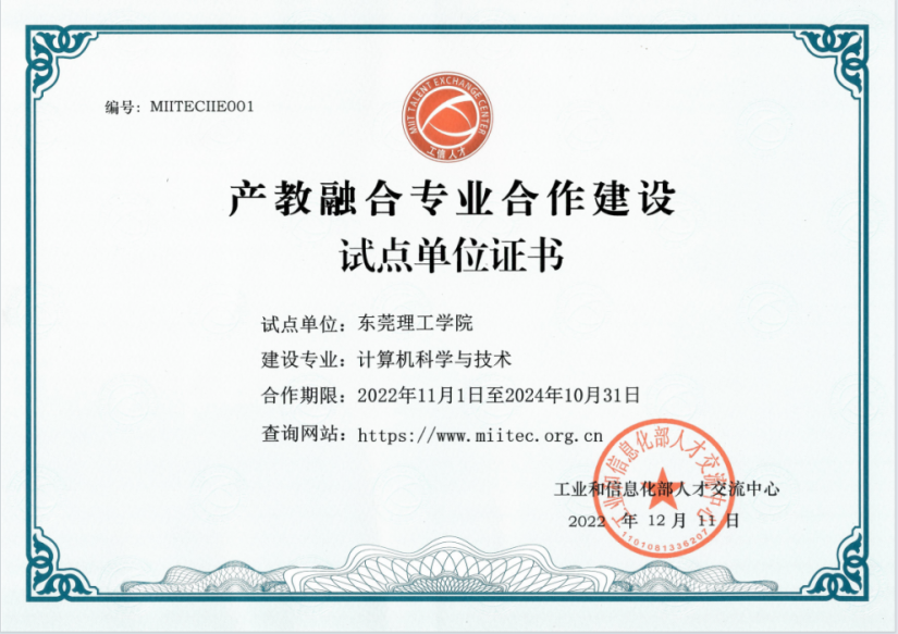 2022年,根据《广东省教育厅关于开展第三批示范性产业学院遴选工作的通知》要求,经学校申报、资格审核、通讯评审及现场答辩,广东省教育厅认定东莞理工学院华为信息与网络技术学院为第三批省级示范性产业学院。