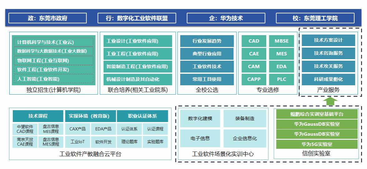 培养目标:以粤港澳大湾区产业发展急需为牵引,面向行业特色鲜明、促进东莞理工学院与产业联系紧密,建设华为信息与网络技术学院。在此基础上,引导高校瞄准与地方经济社会发展的结合点,不断优化专业结构、增强办学活力,探索产业链、创新链、教育链有效衔接机制,建立新型信息、人才、技术与物质资源共享机制,完善产教融合协同育人机制,创新企业兼职教师评聘机制,构建高等教育与产业集群联动发展机制,打造一批融人才培养、科学研究、技术创新、企业服务、学生创业等功能于一体的示范性人才培养实体,为其他应用型高校建设提供可复制、可推广的新模式。