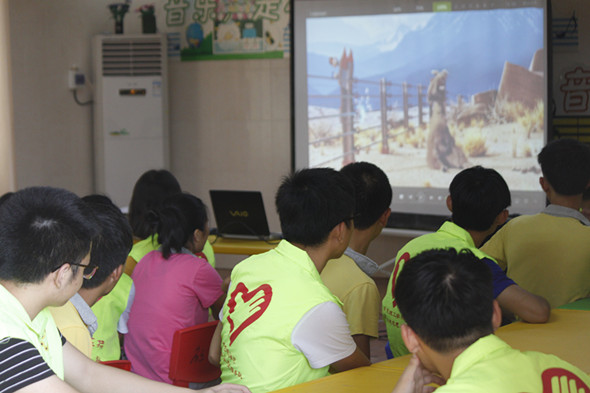 志愿队抵达目的地后,由社工对志愿者们进行简短的培训,社工交代了接下来义教过程中的注意事项以及与小朋友交流地方式方法。志愿者们被分为两组,一组为电脑班,教孩子们PS和Word的一些基本操作,此次还开设了一项有难度的拓展训练。孩子们思维敏捷、头脑灵活,做起志愿者们交给他们的学习任务也是得心应手。另一组为普通班,志愿者们带领孩子们观看视频,并且教导孩子们做事要有耐心,不可急于求成;过马路要遵守红灯停,绿灯行的交通规则。接着教孩子们做科学小实验,引领他们了解静电原理。然后教孩子们制作风铃,孩子们心灵手巧,都制作出了精美的风铃。最后,志愿者们给孩子们分发小礼物。以及与这些可爱的孩子们合影留念。在全部活动结束后,志愿者们与社工围坐在一起,交谈着这次义教活动的想法与体会。