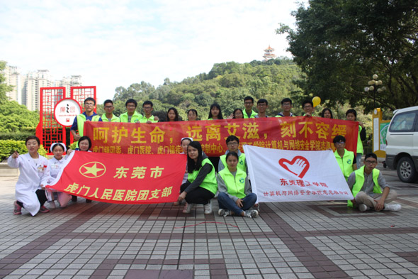 12月2号上午,计算机与网络安全学院志愿服务站与虎门镇团委、虎门医院、虎门镇疾病预防控制中心共同在虎门公园开展了“珍爱生命,预防艾滋,真爱伴我行”的志愿活动。