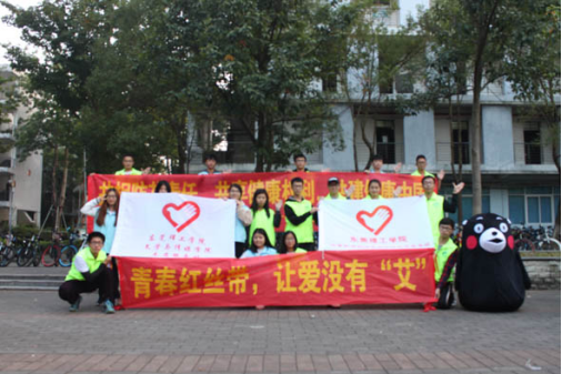 12月7日,计算机与网络安全学院团总支志愿服务站联合文学与传媒学院志愿服务站于学生公寓广场展开“青春红丝带,让爱没有艾”的宣艾活动。本次活动有幸邀请到辅导员李国歌到场参观,且有东莞理工学院学生参与。