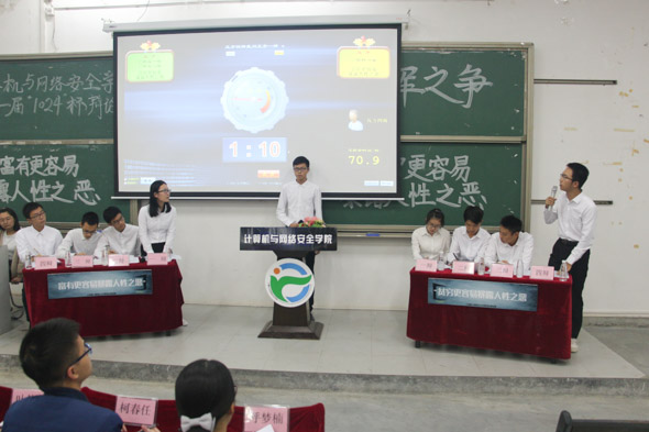 12月10日晚,计算机与网络安全学院1024杯辩论赛决赛在综合松山湖校区教学楼6E307课室顺利举行。本次辩论赛的评委有东莞理工学院辩论队队长柯春任、队员呼梦楠、王星亮,计算机与网络安全学院辩论队队长叶柱良、副队长周晓琳、陈贵钞。担任本次辩论赛的嘉宾的有计算机网络安全学院学生会主席李仲尧、副主席林嘉怡、张艳娥以及学习部副部长曾宇航。