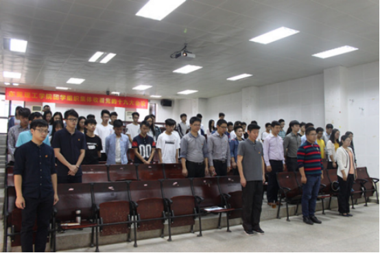 国歌唱罢,全体代表为毛泽东、周恩来、刘少奇、朱德、邓小平、陈云等已故老一辈无产阶级和革命先烈默哀,同时,观看直播的全体师生也起立,怀着崇敬的心情进行悼念。接着,习近平总书记代表十八届中央委员会向大会做报告。报告长达三个半小时,在此期间,在场师生无一人提前离场,全都聚精会神地观看直播。