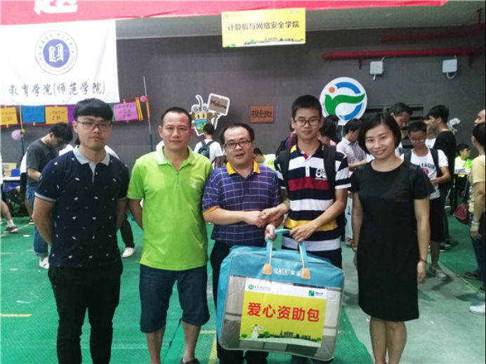 活动伊始,计算机与网络安全学院各领导现场管理迎新工作,确保迎新工作有序进行,并向贫困学生发放爱心资助包。体现了计算机与网络安全学院领导对迎新工作的高度重视以及对学生的关心与照顾。