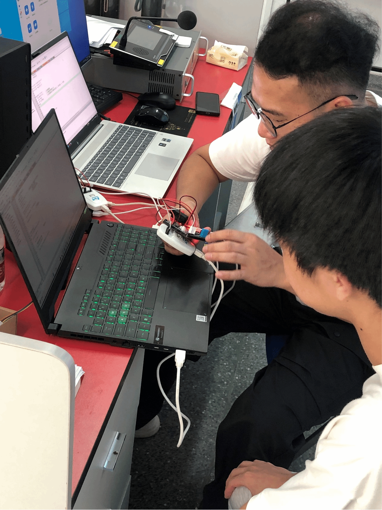 7月5日,串口通信与中断机制成为核心:学员通过MCU与PC端双向通信,实现数据发送及指令控制LED;7月6日进一步拓展外部中断应用,完成“按键触发LED1停止闪烁、LED2点亮”的动态响应,并集成语音播报功能。