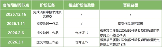 项目结题证书:本次大赛将为通过阶段性验收的项目发放项目结题证书。通过第二阶段验收的项目为结题合格,颁发项目结题合格证书。通过第三阶段验收的项目为结题优秀,颁发项目结题优秀证书。